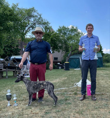 Den internationalen Champion David mit amerikanischen Blutlinien hatten wir uns als Partner für Kiki ausgesucht und sind dafür nach Italien zum Kennel "Sobers" von Bitte Ahrens-Primavera und Pierluigi Primavera gefahren,